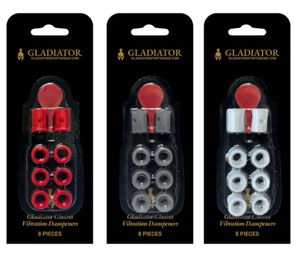 De Gladiator Cheires Trillingsdempers verminderen trillingen, helpen tenniselleboog voorkomen en laten je de balans van je racket aanpassen voor power, controle of comfort. Inclusief 8 dempers en verwijderingssleutel.